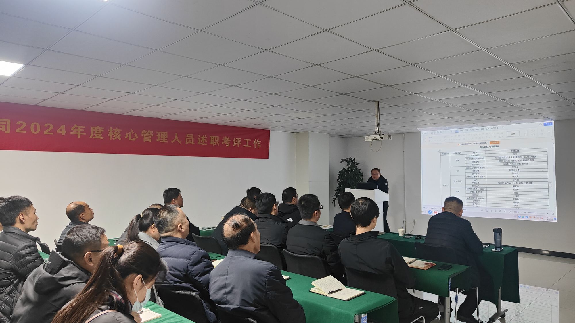 本次共有52名管理人員參與了述職考評。述職人員圍繞個人履職情況、存在的主要問題和整改措施、新年度工作計劃等方面進行闡述。