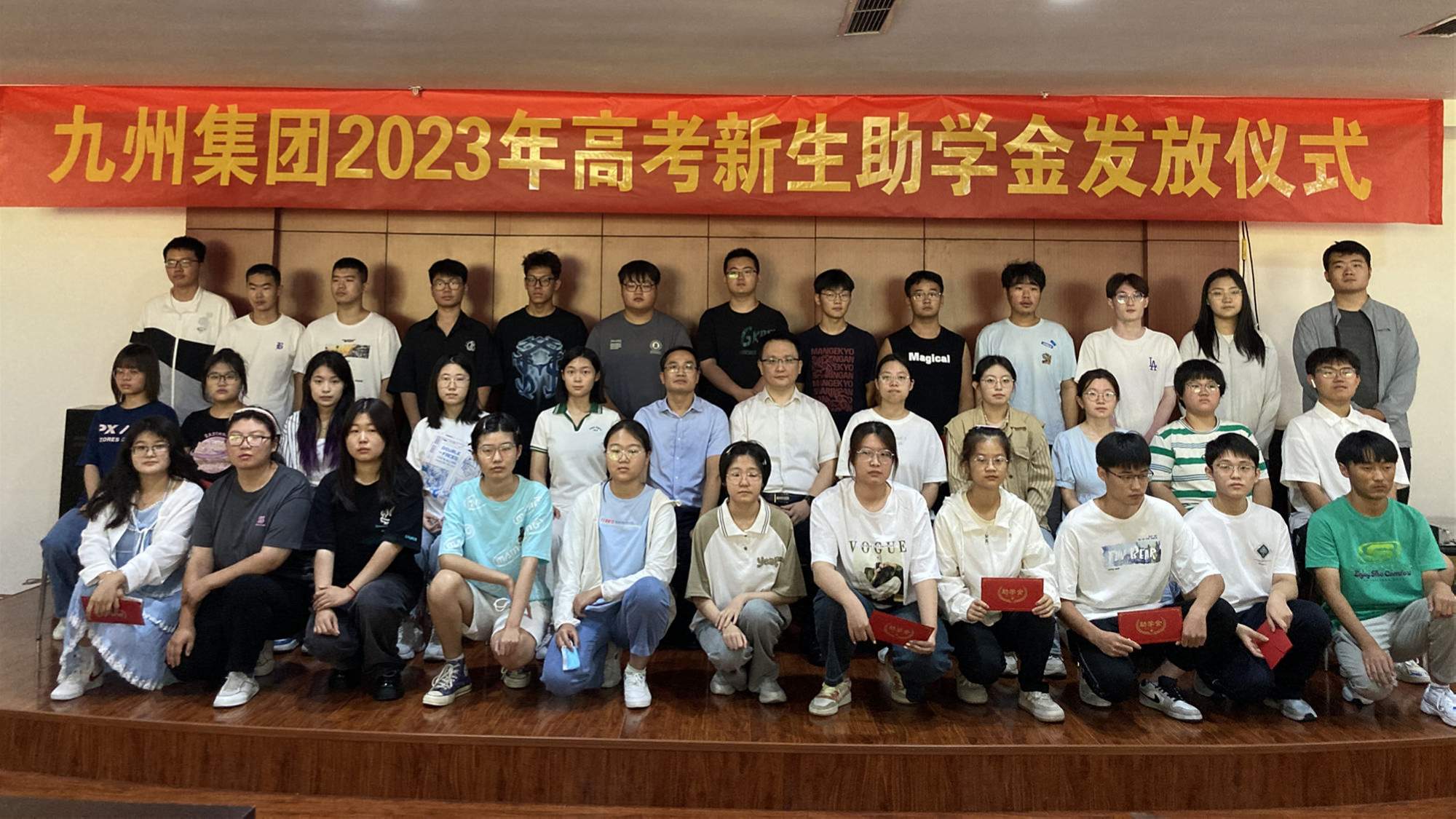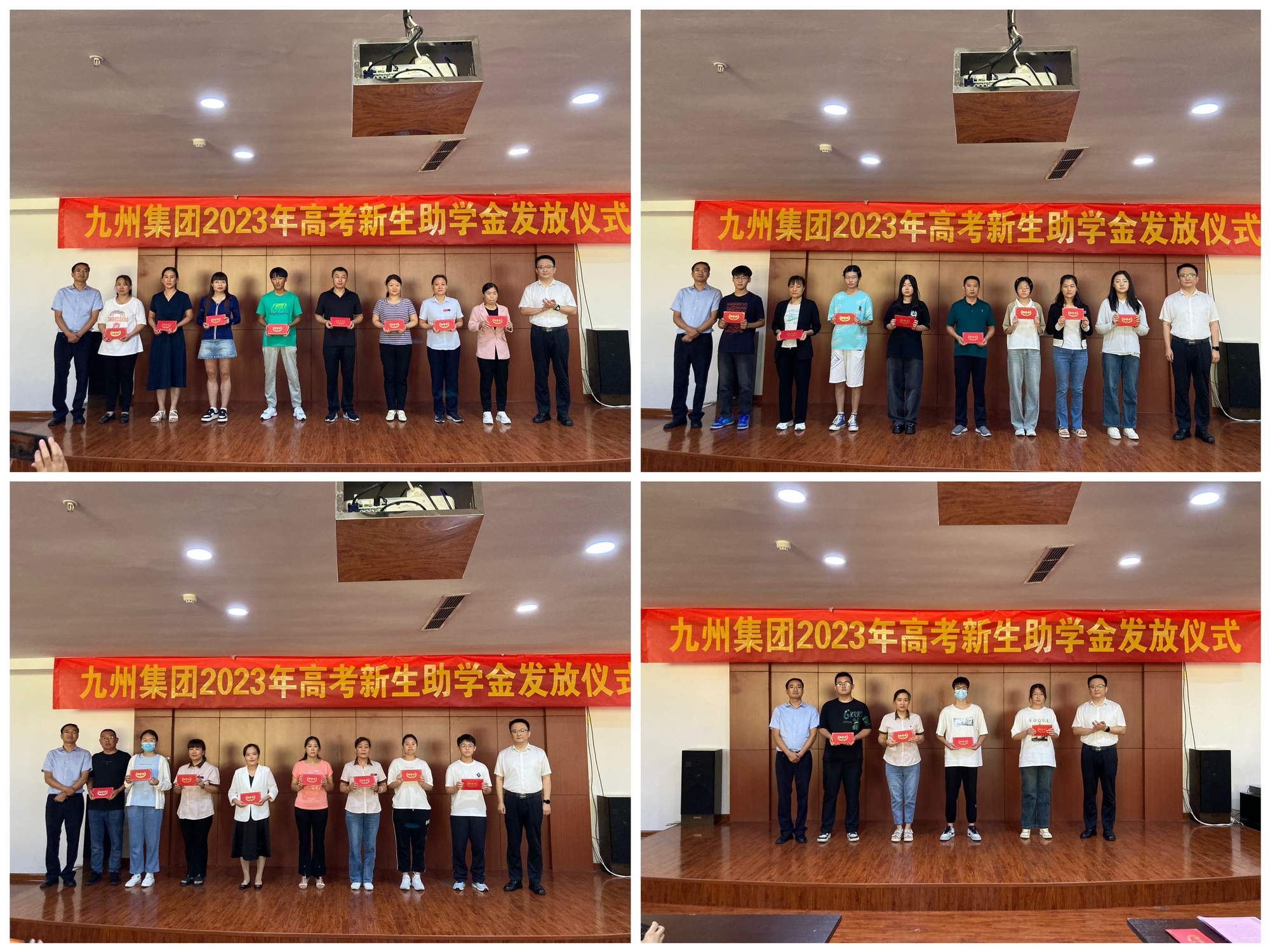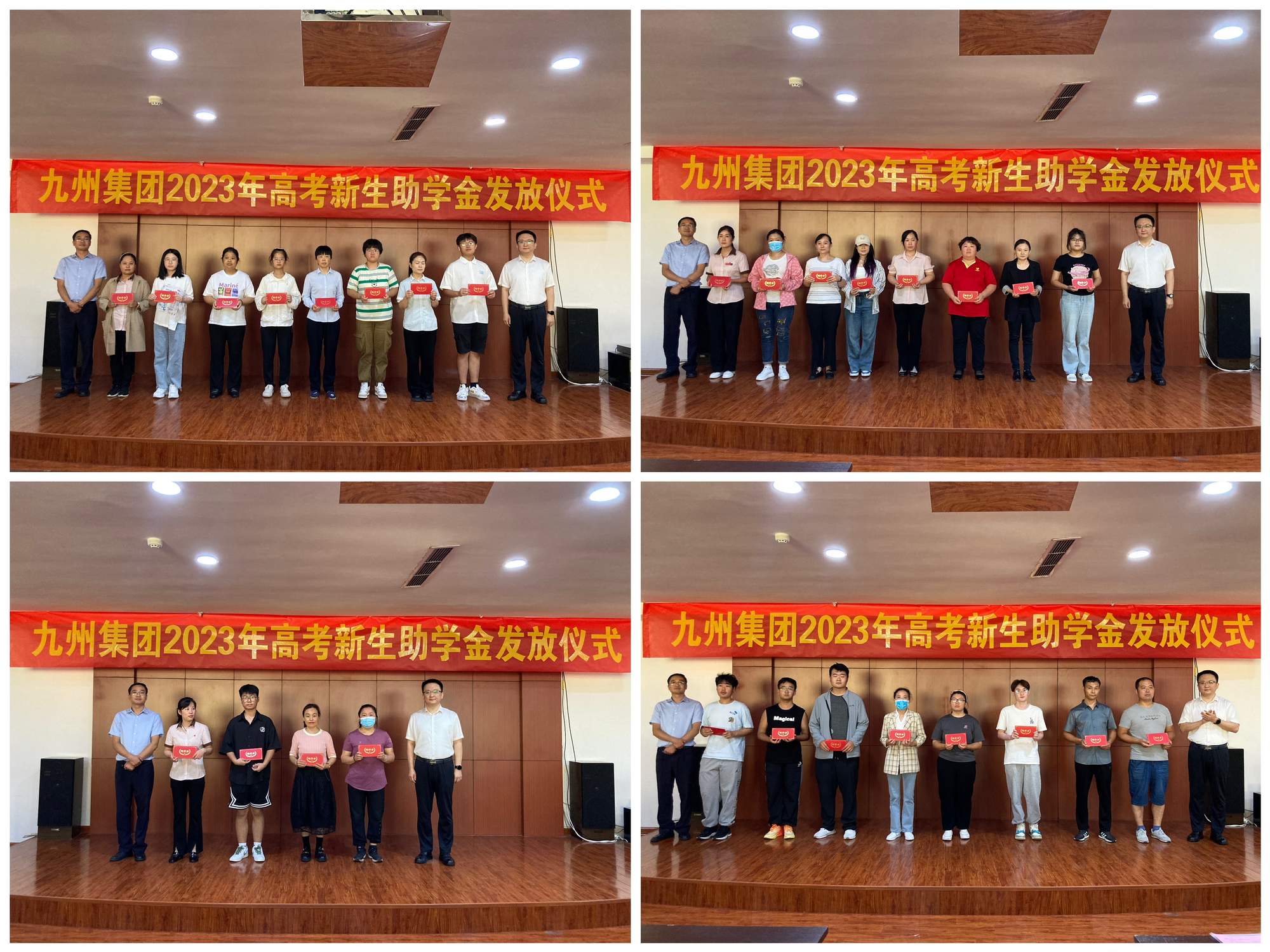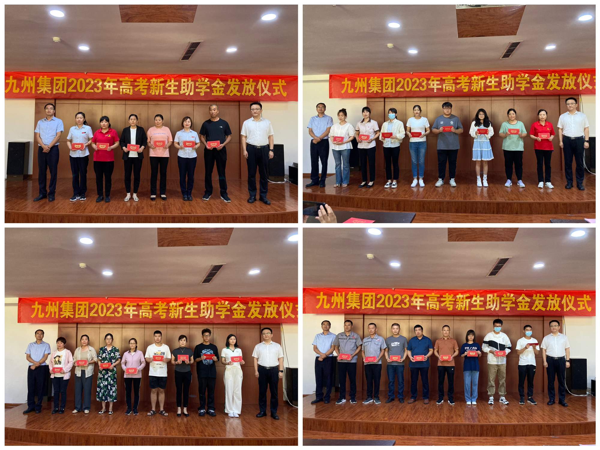 會(huì)上,為升入大學(xué)的職工子女頒發(fā)九州集團(tuán)2023年高考助學(xué)金。本年度,集團(tuán)共為91名升入大學(xué)的職工子女發(fā)放高考助學(xué)金共計(jì)23.5萬(wàn)元。