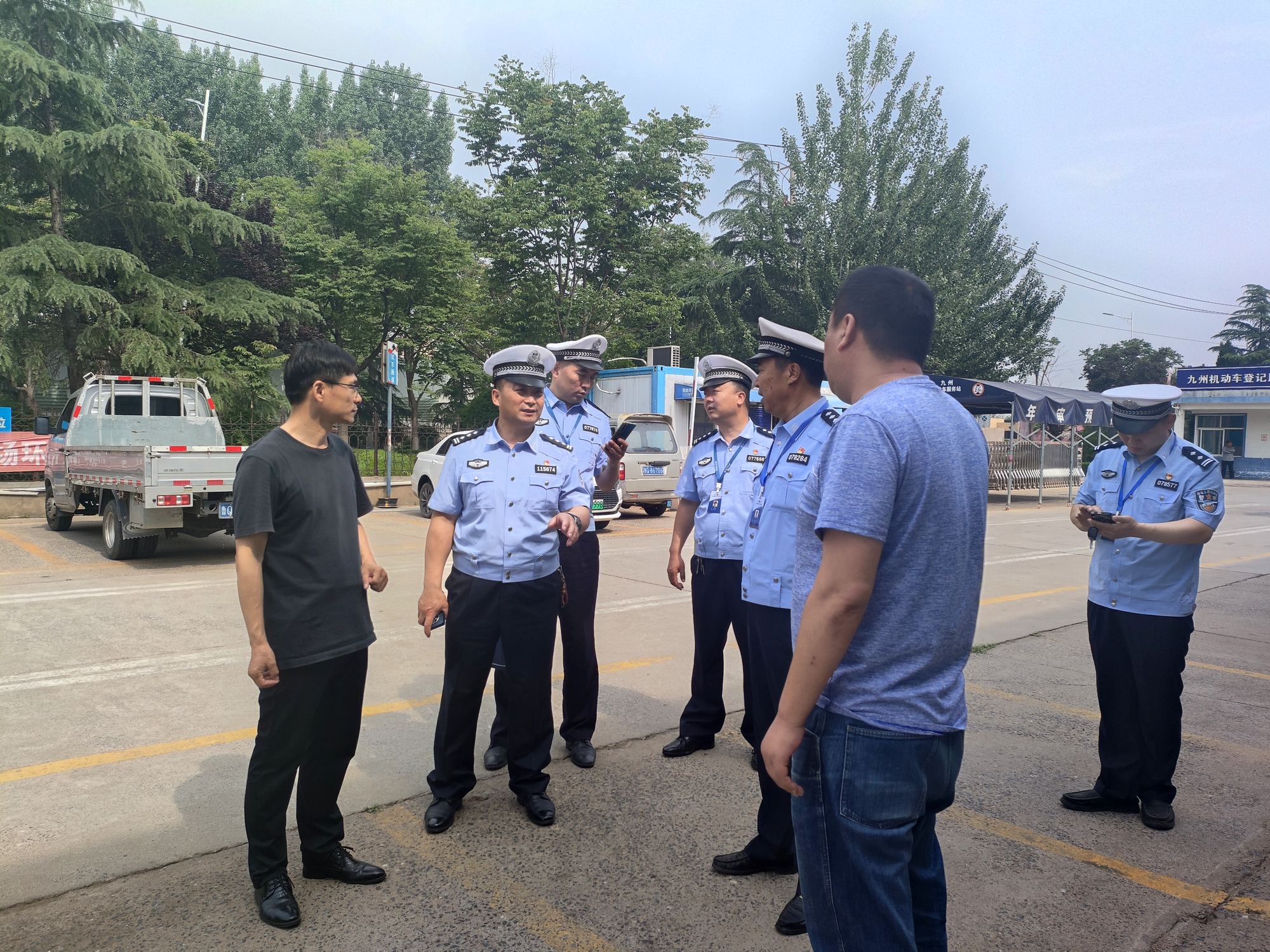 5月31日上午,市車管所副所長宋增明、楊小峰,市車管直屬二分所所長鄔寬海一行到九州機(jī)動車登記服務(wù)站調(diào)研指導(dǎo)車管業(yè)務(wù)工作,汽貿(mào)公司總經(jīng)理張佃波、副總經(jīng)理佘江濤陪同調(diào)研。