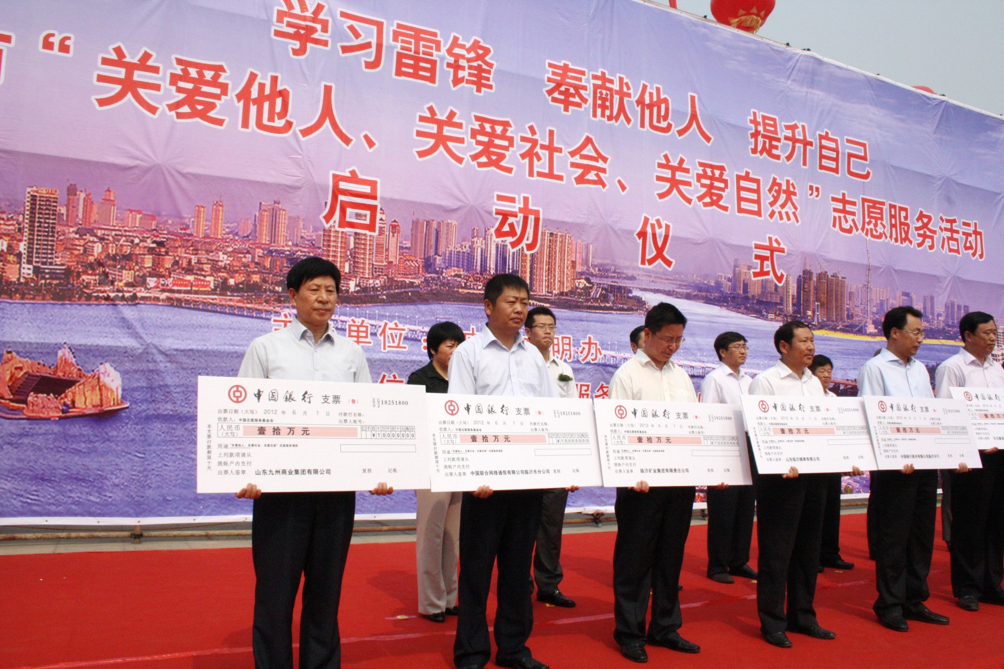 6月3日,臨沂市“關(guān)愛他人、關(guān)愛社會、關(guān)愛自然”志愿服務(wù)活動啟動儀式在人民廣場舉行。中國志愿服務(wù)基金會副理事長段汝官,省文明辦專職副主任王紅勇,市委書記、市人大常委會主任張少軍等中央、省、市領(lǐng)導出席啟動儀式;顒蝇F(xiàn)場,集團黨委書記王佐文代表集團向“三關(guān)愛”志愿服務(wù)活動捐款10萬元,集團紀檢書記、工會主席石紹獻帶領(lǐng)九州學雷鋒志愿者參加啟動儀式。 “關(guān)愛他人、關(guān)愛社會、關(guān)愛自然”志愿服務(wù)活動是中央文明辦在整合各類志愿服務(wù)項目的基礎(chǔ)上,在全國部署開展的品牌志愿工作項目,是推動學雷鋒活動常態(tài)化的重大舉措。作為省級文明單位,集團高度重視、精心組織,捐助愛心基金、組織學雷鋒志愿者……用實際行動深入踐行雷鋒精神,開展扎實有效的志愿活動推動我市文明進程。